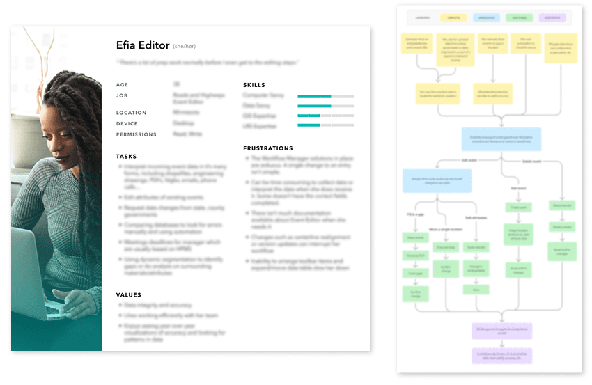 There were many opportunities at Esri for system improvements, teaching colleagues, and breaking down silos. For both the UX/UI/Carto team and the larger teams within which we were nested, I created sites to represent our work and provide career path guidance to colleagues.